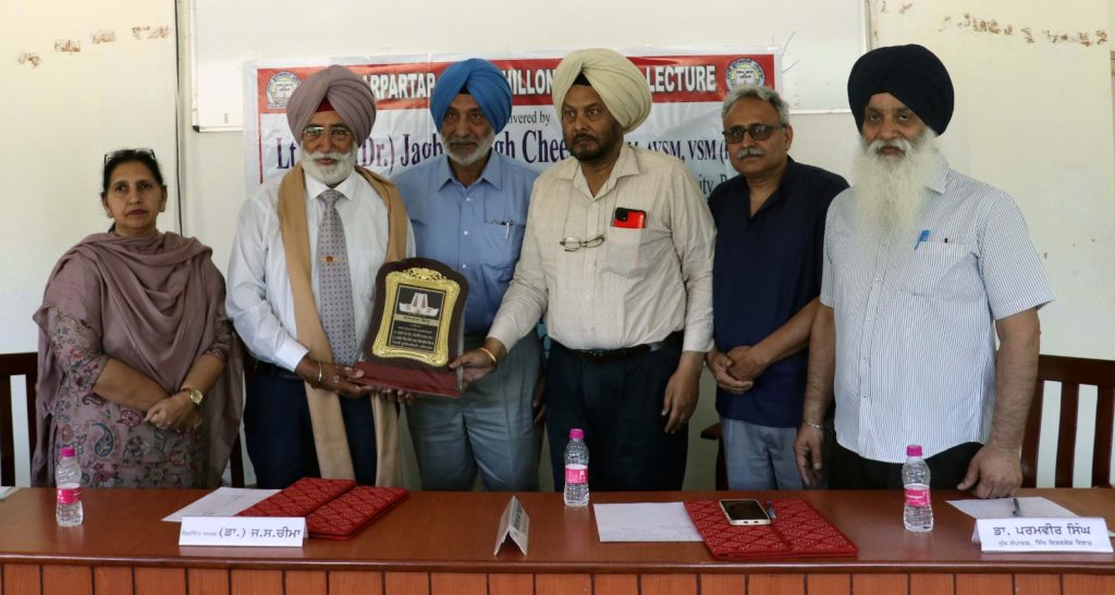 ਡਾ. ਚੀਮਾ ਨੇ ਆਪਣੇ ਭਾਸ਼ਣ ਵਿੱਚ ਭਾਰਤੀ ਸੈਨਾਵਾਂ ਨਾਲ ਪੰਜਾਬ ਦੇ ਸੰਬੰਧਾਂ ਦੇ ਵੱਖ-ਵੱਖ ਪਹਿਲੂਆਂ ਨੂੰ ਉਜਾਗਰ ਕੀਤਾ। ਉਨ੍ਹਾਂ ਕਿਹਾ ਕਿ ਪੰਜਾਬੀਆਂ ਦਾ ਸੈਨਾਵਾਂ ਨਾਲ ਜੁੜਿਆ ਵਿਰਸਾ ਅਤਿਅੰਤ ਮਾਣਮੱਤਾ ਹੈ। ਉਨ੍ਹਾਂ ਦੱਸਿਆ ਕਿ ਪੰਜਾਬ ਦੀ ਆਬਾਦੀ ਭਾਰਤ ਦੀ ਕੁੱਲ ਆਬਾਦੀ ਦਾ ਸਿਰਫ਼ 2% ਹੈ, ਪਰ ਸੈਨਾਵਾਂ ਵਿੱਚ ਪੰਜਾਬੀਆਂ ਦੀ ਭਾਗੀਦਾਰੀ 7% ਤੱਕ ਹੈ। ਇਸ ਤੋਂ ਵੀ ਅਹਿਮ ਗੱਲ ਇਹ ਹੈ ਕਿ ਬਹਾਦਰੀ ਲਈ ਮਿਲਣ ਵਾਲੇ ਸਨਮਾਨਾਂ ਵਿੱਚ ਪੰਜਾਬੀਆਂ ਦਾ ਹਿੱਸਾ ਲਗਭਗ 17% ਹੈ। ਪੰਜਾਬ ਦੇ ਸ਼ਹੀਦ ਸੈਨਿਕਾਂ ਦੀਆਂ ਕੁਰਬਾਨੀਆਂ ਇਹ ਵੀ ਦਰਸਾਉਂਦੀਆਂ ਹਨ ਕਿ ਭਾਰਤ ਦੇ ਕਿਸੇ ਵੀ ਹੋਰ ਸੂਬੇ ਨਾਲੋਂ ਪੰਜਾਬ ਵਿੱਚ ਸਭ ਤੋਂ ਵੱਧ ਸ਼ਹੀਦਾਂ ਦੀਆਂ ਵਿਧਵਾਵਾਂ ਹਨ।