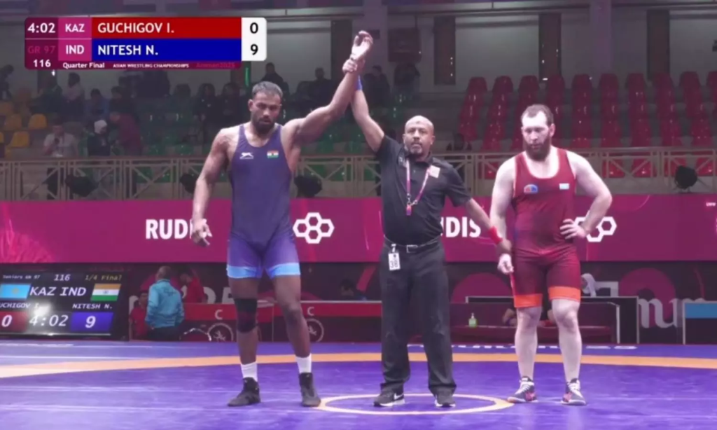 Nitesh claimed his first senior continental medal, a bronze, in the Greco-Roman 97kg category at the Asian Wrestling Championships 2025 held in Amman, Jordan, on Wednesday. His achievement marked India’s second medal in the Greco-Roman events, concluding the country’s campaign in this style with two bronze medals.