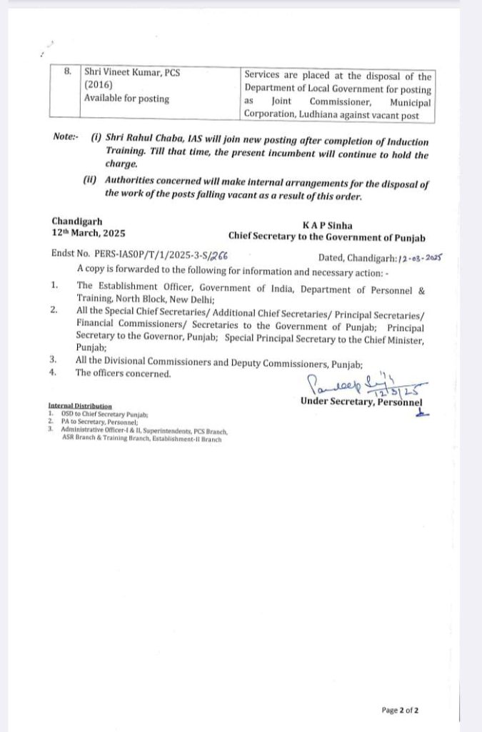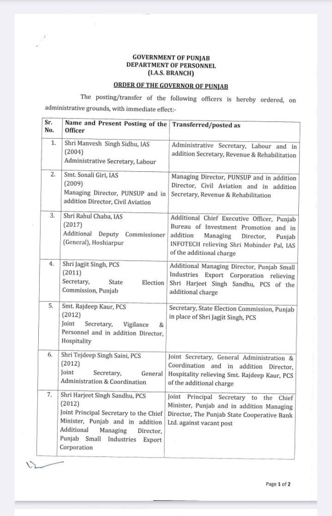 In a significant administrative reshuffle, the Punjab government has transferred 8 IAS and PCS officers across various positions. The decision aims to streamline governance and ensure efficient administration in the state.