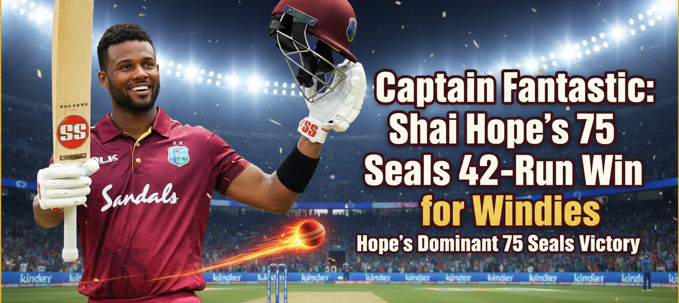 Shai Hope was named Player of the Match for his match-defining captain’s innings of 75 off 46 balls, which set up the total and earned him praise for his calm, controlled acceleration and leadership.