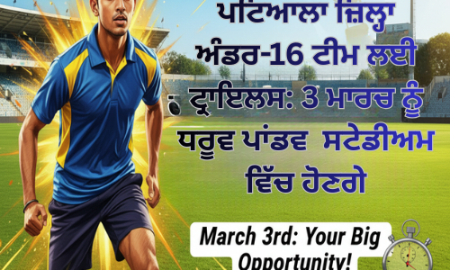 ਪਟਿਆਲਾ ਜ਼ਿਲ੍ਹਾ ਅੰਡਰ-16 ਟੀਮ ਲਈ ਟ੍ਰਾਇਲਸ: 3 ਮਾਰਚ ਨੂੰ ਧਰੂਵ ਪਾਂਡਵ ਸਟੇਡੀਅਮ ਵਿੱਚ ਹੋਣਗੇ