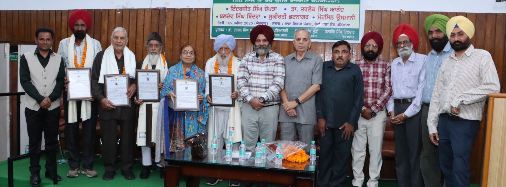 In a heartwarming and memorable literary ceremony organised at the Lecture Hall of the Department of Languages, Punjab, Patiala, the Punjabi Sahit Sabha (Regd.) Patiala today conferred its prestigious ‘Punjabi Sahit Sabha Kalmkar Puraskar’ upon five distinguished senior writers, all aged above 80 years.