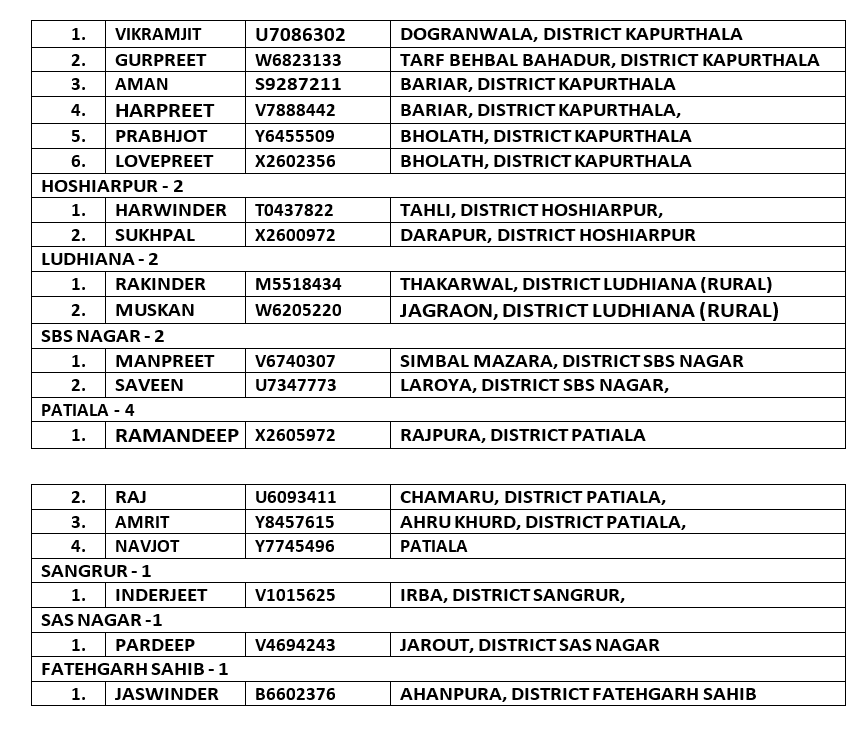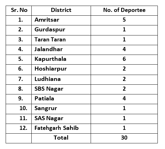 The United States has recently deported a large number of undocumented Indian immigrants, including many Punjabis. These individuals have been returned to India, and a list detailing their names and the districts they belong to is attached.