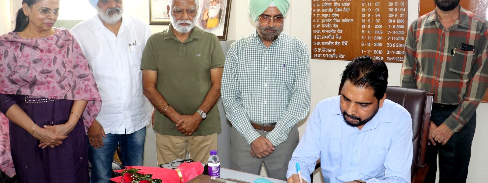 Dr. Gurusevak Lambi assumed the position of Head of the Punjabi Language Development Department at Punjabi University today. Vice Chancellor Dr. Jagdeep Singh and Dean of Academic Affairs Dr. Jaswinder Singh Brar were present to graciously welcome him upon taking charge.