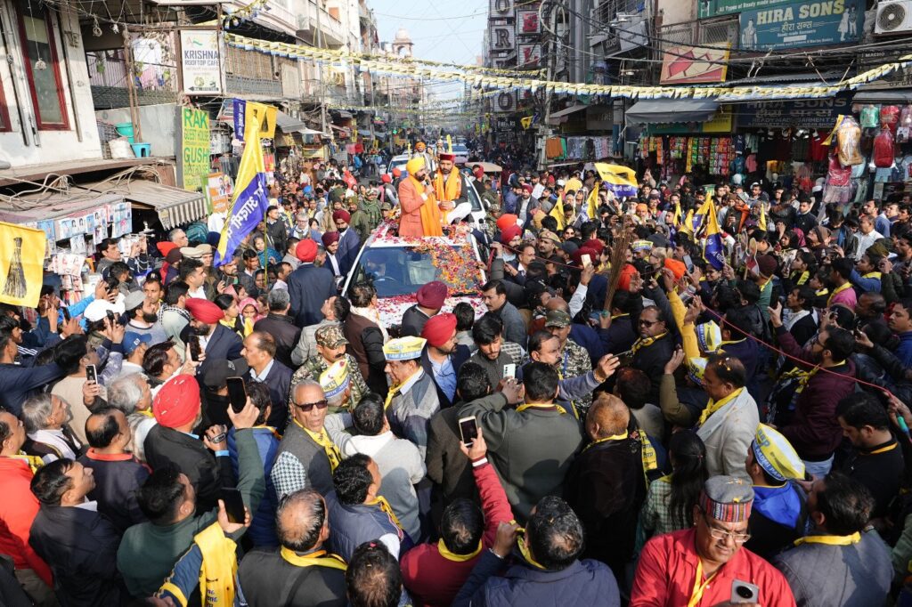 The roadshow marked the nomination of AAP candidate Vishesh Ravi, who is contesting from Karol Bagh. Addressing the crowd, Mann thanked the local residents and shopkeepers for their overwhelming support. “Your enthusiasm and massive turnout here clearly show that Vishesh Ravi will win from this constituency for the fourth consecutive time,” he said.