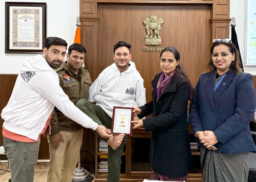 Deputy Commissioner (DC) of Patiala, Dr. Preeti Yadav, IAS, honored para cricketer Amir Hussain Lone, the Brand Ambassador of Aryans Group of Colleges, Rajpura, at a recent visit by a delegation from the college. Superintendent of Police (SP) Patiala, Md Sarfraz Alam (IAS), was also present.