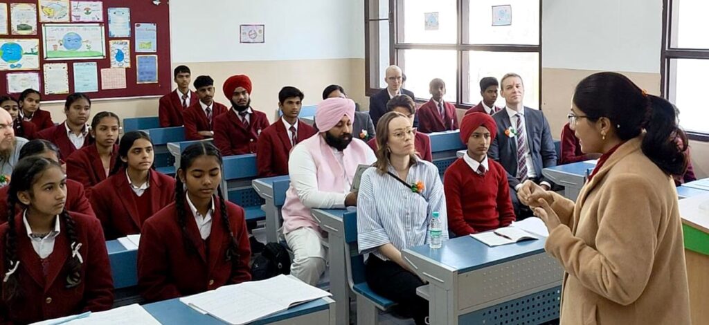 During the visit, National Awardee Art & Craft Teacher Gurpreet Singh Namdhari engaged the guests in creating a live painting of the Finnish flag outlined by the country’s map, showcasing the artistic talents of the students. The Finnish experts were impressed by the students’ skills.