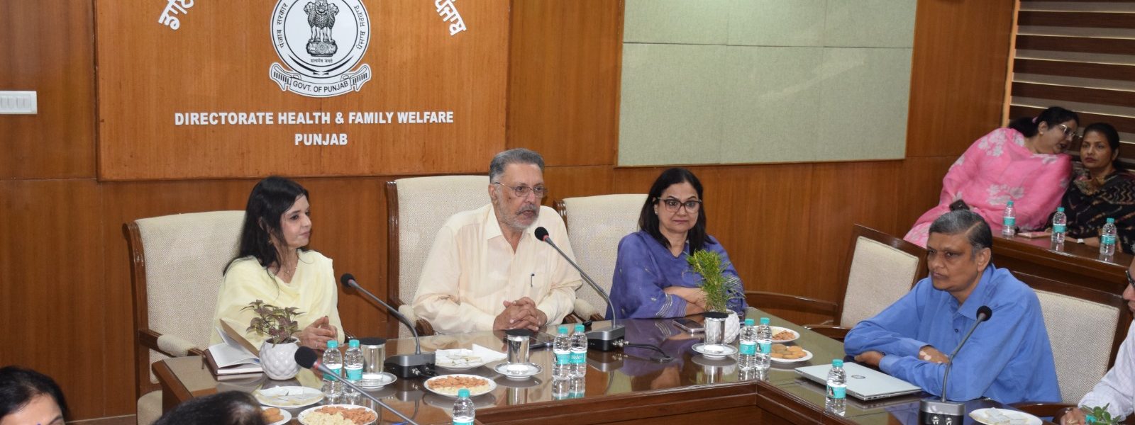 The meeting was attended by Dr. Hitinder Kaur, Director Health & Family Welfare Punjab; Dr. Aditi Salaria, Director Health Services (Family Welfare); Dr. Pankaj Vohra, Regional Director ESI; along with Deputy Directors, Assistant Directors, Program Officers, and other senior officials.