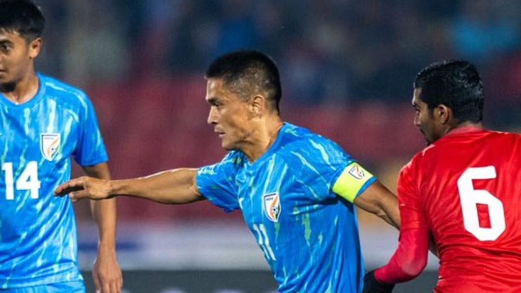 Sunil Chhetri marked his return to international football with a bang, scoring the final goal in India’s dominant 3-0 victory over the Maldives in a friendly at Jawaharlal Nehru Stadium. The match, India’s first win under new head coach Manolo Márquez, served as a perfect tune-up for the upcoming AFC Asian Cup 2027 qualifiers.