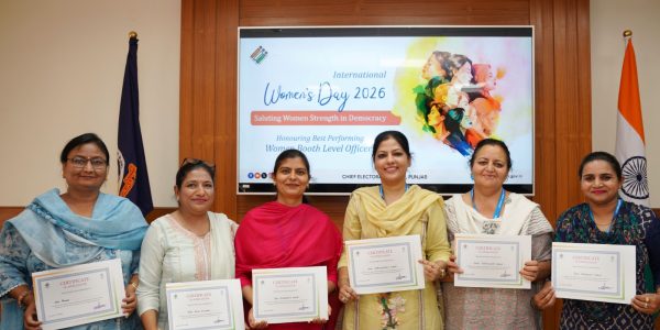 ਚੰਡੀਗੜ੍ਹ, 10 ਮਾਰਚ ਅੰਤਰਰਾਸ਼ਟਰੀ ਮਹਿਲਾ ਦਿਵਸ ਦੇ ਮੌਕੇ ’ਤੇ ਪੰਜਾਬ ਭਰ ਦੇ ਸਾਰੇ ਜ਼ਿਲ੍ਹਿਆਂ ਵਿੱਚ ਵਿਸ਼ੇਸ਼ ਸਮਾਗਮ ਕਰਵਾਏ ਗਏ, ਜਿੱਥੇ ਚੋਣ ਪ੍ਰਕਿਰਿਆ ਨੂੰ ਜ਼ਮੀਨੀ ਪੱਧਰ ’ਤੇ ਮਜ਼ਬੂਤ ਬਣਾਉਣ ਵਿੱਚ ਮਹੱਤਵਪੂਰਨ ਯੋਗਦਾਨ ਪਾਉਣ ਵਾਲੀਆਂ ਮਹਿਲਾ ਬੂਥ ਲੈਵਲ ਅਫਸਰਾਂ (ਬੀ.ਐਲ.ਓ.) ਨੂੰ ਸਨਮਾਨਿਤ…