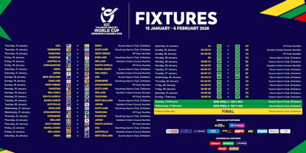 Patiala, 19 November (Sports Desk) The International Cricket Council (ICC) has unveiled the complete schedule for the ICC Under-19 Men’s Cricket World Cup 2026, to be co-hosted by Zimbabwe and Namibia from 15 January to 6 February 2026. This will…